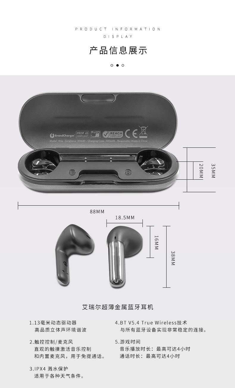 · 环境噪声消除,在通话过程中减少环境音,使您通话音质更加清晰· 边走边充,长连续播放16小时,多场景适用· 人体工程学设计,紧密贴合您的耳朵,提供舒适,稳定安全的佩戴体验·13毫米动态驱动器, 触控控制/麦克风,直接触控音乐控制· IPX4溅水保护,适用于各种天气· BT V5.4 True Wireless技术,与所有蓝牙设备实现非常稳定的连接。