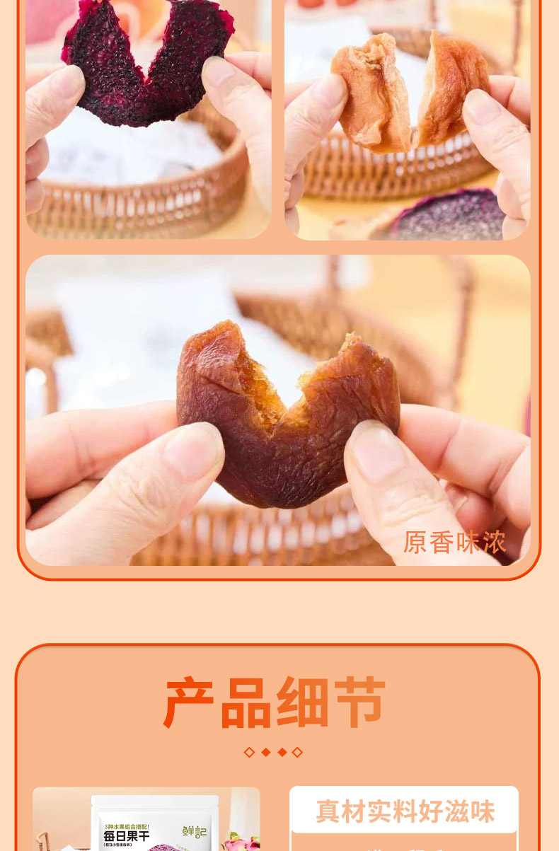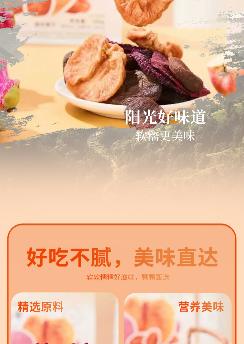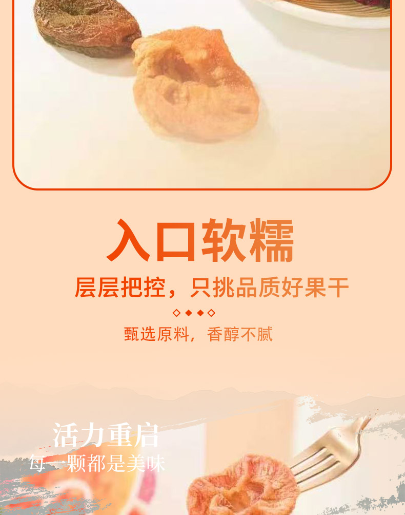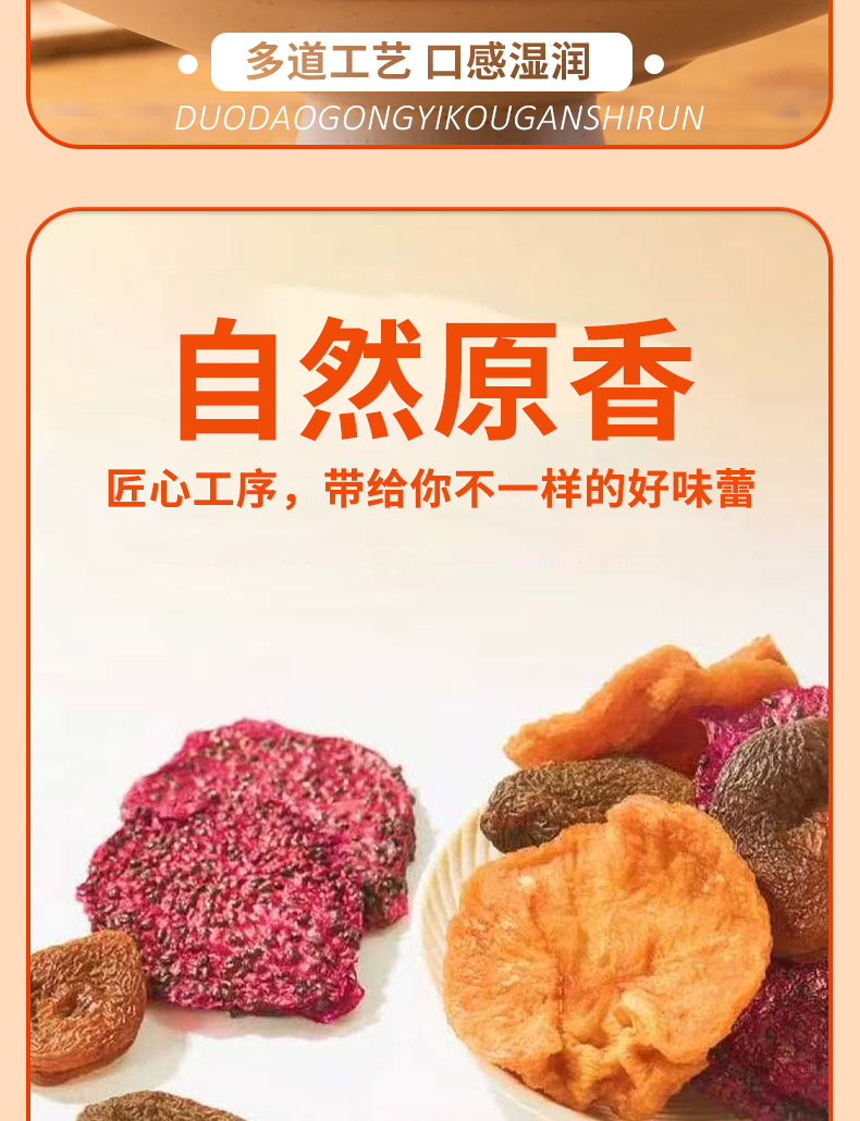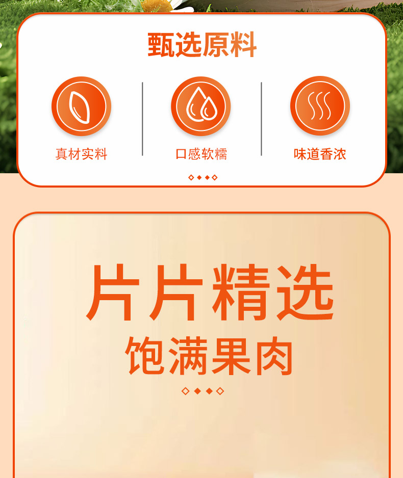 甄选原料,片片饱满; 果肉甘甜,果香馥郁; 自然原香,香醇不腻。